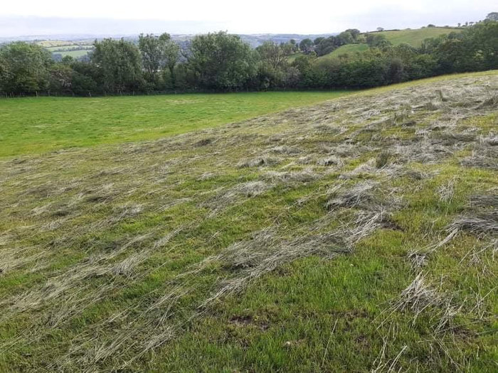 I’ve been busy with fieldwork during the dry weather. Topping the rushes that grow in the damp areas of the fields. Once they start to re grow, the sheep often nibble the fresh shoots, so they help in the control as well.