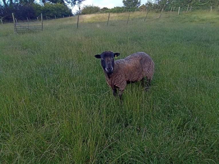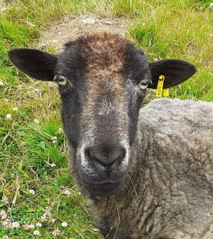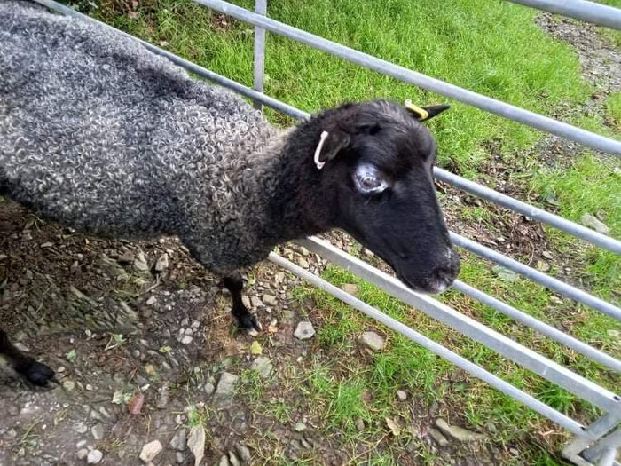 A few days after arrival, I noticed Kiss has a slightly cloudy eye. This is usually a sign of a highly infectious eye problem. I started treatment immediately with eye ointment, but only had a little left in the tube so asked my vet to drop more into me (he only lives a mile down the road so always drops meds into me on his way past). He was intrigued to see the new girls as he wasn’t familiar with Gotlands. There aren’t many of them round here!! He was of the opinion that the eye problem was due to trauma rather than infection and that Kiss had knocked or rubbed her eye in the trailer when she was brought over to us. She’s had a 10-day course of treatment…eye cream and anti-inflammatory jabs as her udder was also causing me some concern. She had just been weaned from her 2021 lamb immediately before coming to the Sanctuary.