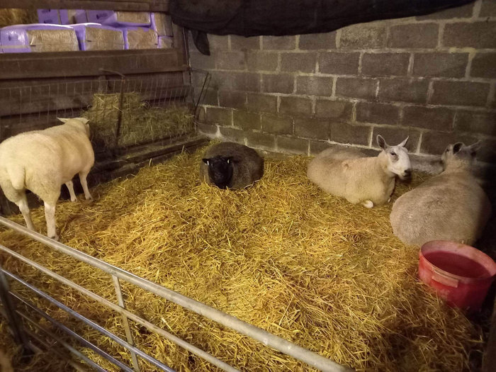 The younger flock will stay out until mid December time, they do have access to the shed at night but it’s not strawed up yet. Whilst it’s still mild though, they are happy to sleep out. Once they do come in at nights for the Winter, the big shed will be strawed up and they’ll have racks full of tasty haylage to much on.