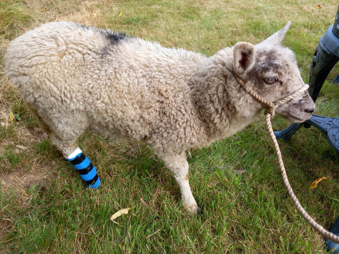 I had a phone call from a good friend in Mid August asking for advice about a lamb she’d rescued which had managed to break it’s leg. I suggested she brought the little lamb over to me and i’d look at it. I’ve sorted many broken legs in lambs over the years. This was a particularly bad break on a hind leg, just above the fetlock (ankle) joint. It felt completely severed and just held together by tendons and skin. I manipulated it as best as I could and strapped it up over gamgee padding held in place with cohesive bandage. Little Piglet as she was called, was given painkillers as she was obviously in great discomfort. I really wasn’t sure what the outcome would be. With such a bad break, septicemia can easily set in. Piglet generally wasn’t in a good state of health, I think she’d come from a farm with little to no management of the stock. She was tiny for her age and looked wormy. As she kindly left a little blob of poo on the floor I did a faecal egg count on it and she had a very heavy worm burden. So she was wormed as well
