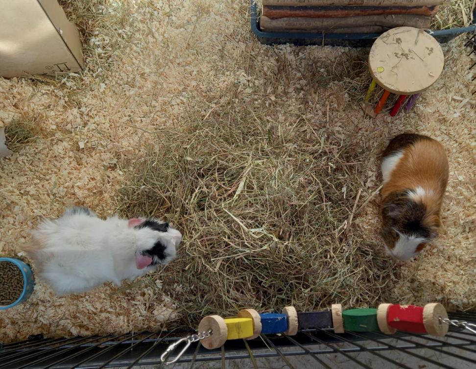 At the beginning of March I rescued two new residents! I know I said I was having to close the door to new sheep rescues but this rescue was two little guinea pigs…..Alan and Elvis. They were 10 months old and had sadly been passed from home to home in their short lives. They were being given away free on a local facebook swapshop and I really felt I should offer them their forever home before they fell into yet another wrong environment. They were very shy and nervous when I first had them and quite small and bony, but they quickly learned who fed them and sat chatting to them and they grew in confidence daily. Alan (the white boy) is a character, he was more confident than Elvis and quite affectionate. He chatters away to me all the time I’m in the office, where they have their run. Elvis (the brown boy) is bigger than Alan and more dominant. He wasn’t so keen on fuss at the beginning, but we take a little time each day to have a cuddle and he is slowly becoming more affectionate and used to being handled. Neither are castrated but they are bonded and have worked out their heirarchy and seem very happy to live together.