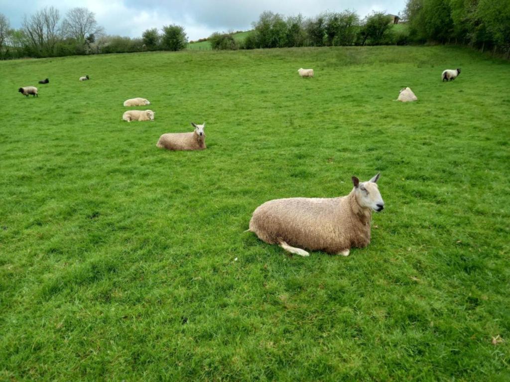 Towards the end of March, the younger flock started to tell me they wanted to be out 24/7. Once the grass starts to grow and sweeten up they go off their hay and rather than sleep in the shed overnight, often have a nibble of hay as it’s there and then wander back out for the night, unless of course the weather is horrendous and then they’ll choose to stay in. So off they went up to Cae Gwair which had been rested all Winter and was lovely and fresh for them. Even if it is a bit wet they don’t mind as it’s much milder and they have plenty of natural shelter from the trees and hedges all around the field.