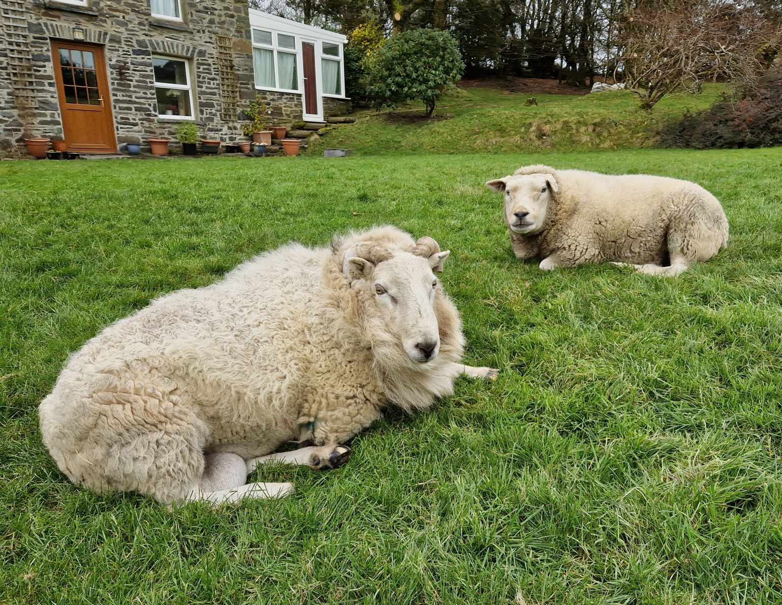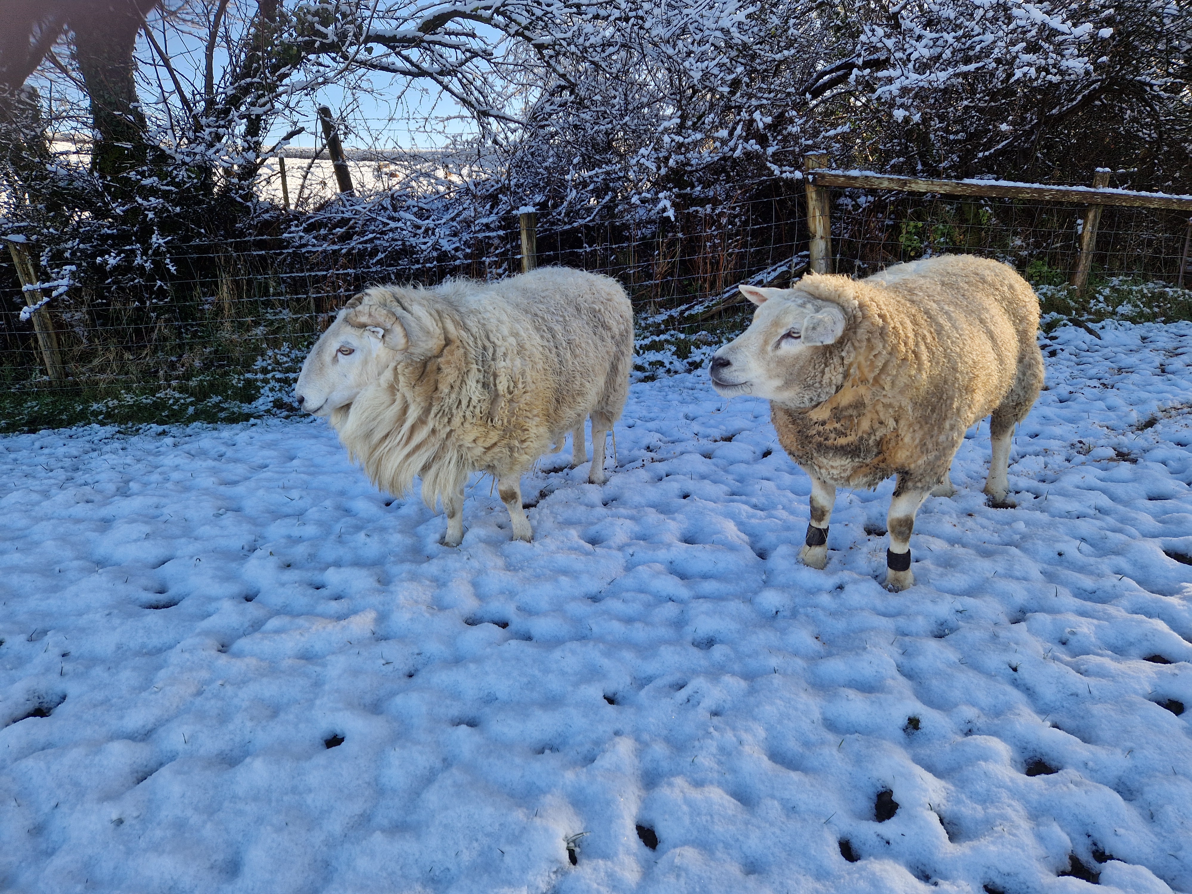 He loved living in the house. He became pretty much house trained and behaved like a little puppy. He would spend his days sitting in the boot room and his evenings in front of the woodburner. He often accompanied me on short trips around the farm or down to the lamb shed to gain strength. Eventually he strengthened up enough to have the splints off bit by bit each day and then finally left off altogether. His legs were perfect and really strong. As he was castrated by his breeder, i gave him the job of running with our old ram Pero as company. The following year he became a friend to Donald, a Welsh ram lamb and they lived together as an inseparable couple until the day Denis departed this world. Denis taught Donald everything he knew, good manners, how to be quiet and easy to handle. Donald looked to Denis for guidance in everything, always letting Denis lead the way.