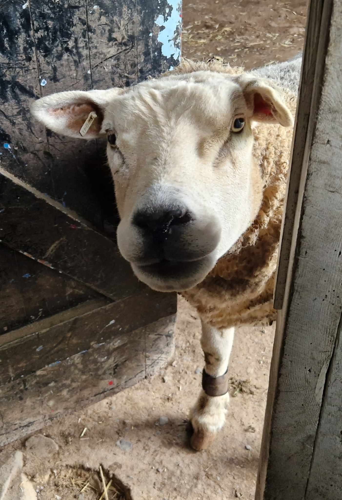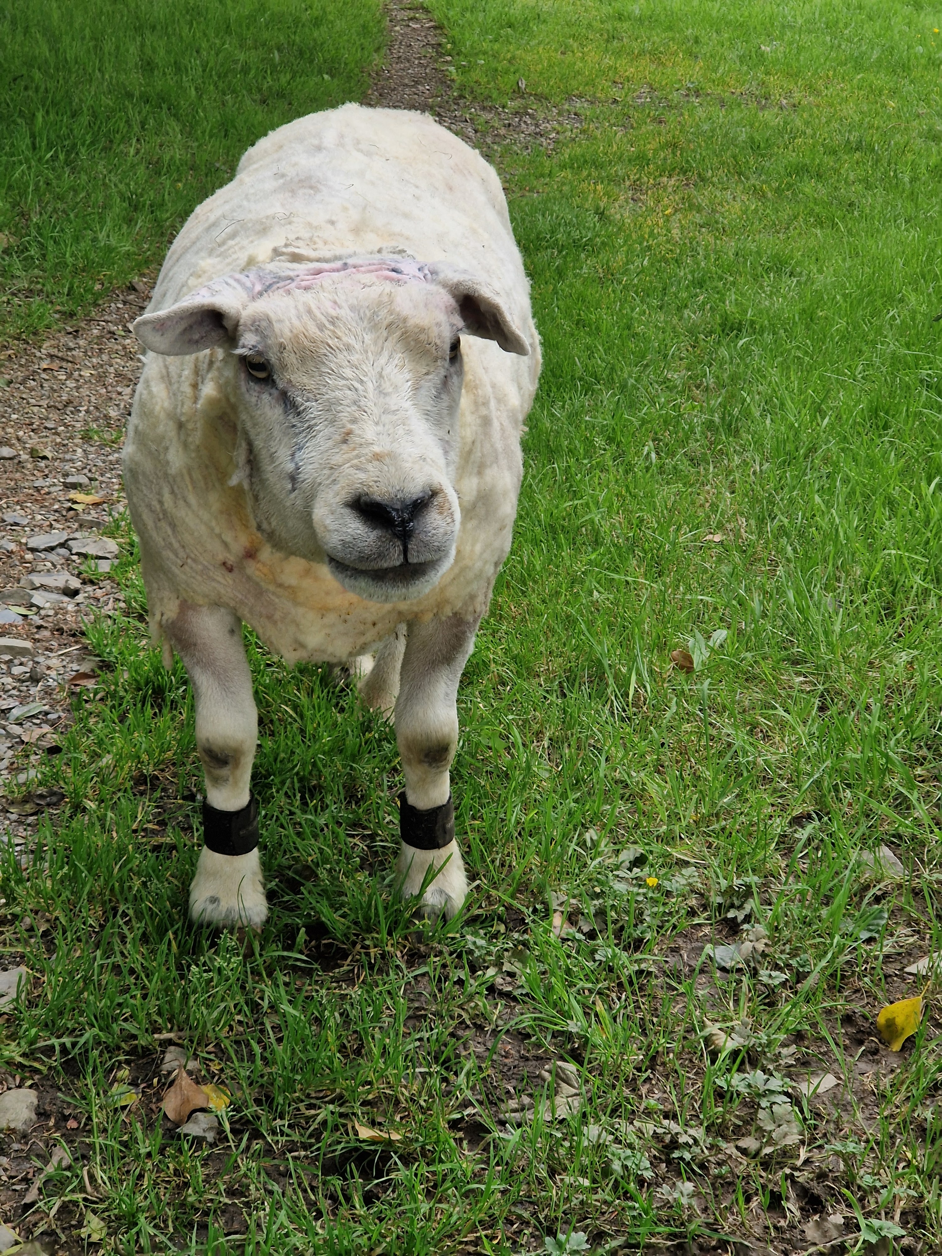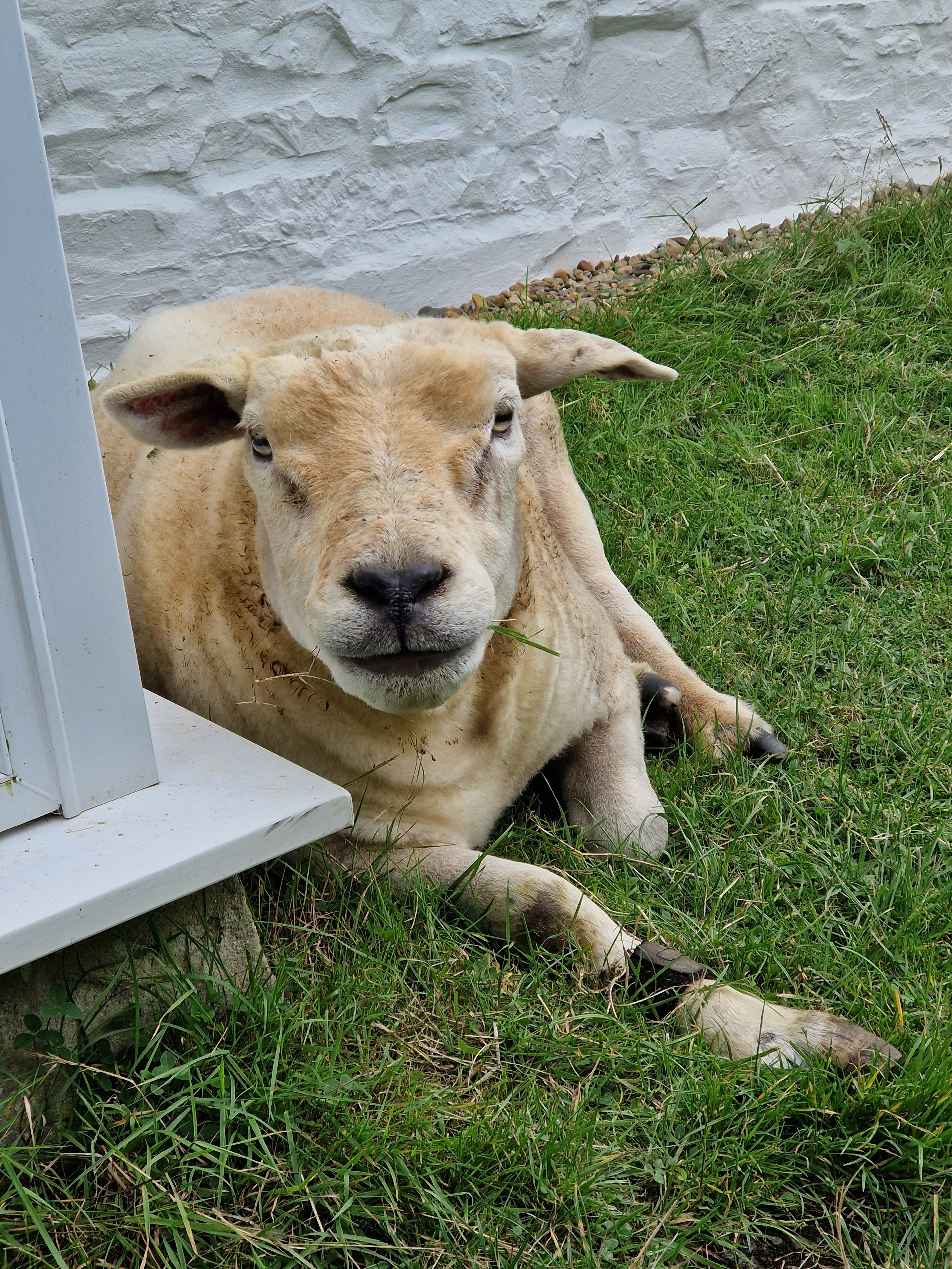 Around the age of 7 arthritis started to set in, particularly in his hips. On shearing day we sheared him standing up so as not to put any strain on his joints by sitting him on his bottom. He also had a haematoma in his left ear which gave him his unique one ear up, one ear down look. He never had the best of feet due to deformities in the shape of his hooves, but regular remedial trimming kept things in check. Denis was a big lad, 130kg in his prime. He shrank a little as he aged but still topped the scales at 100kg at 10 years old. If he was grazing on the lawn he would always come to the back door and ask to come in. He never forgot being a house sheep.