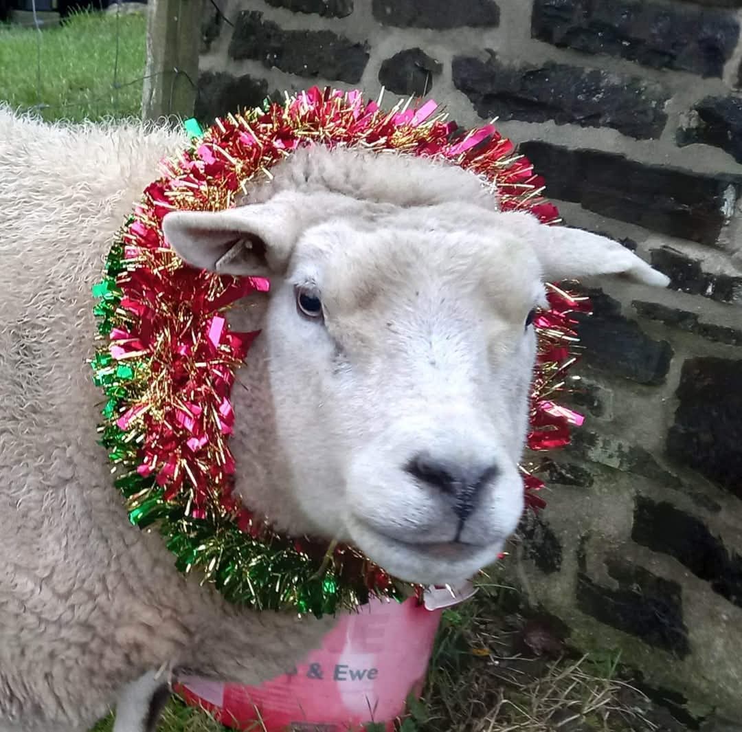 All my sheep are special and loved but Denis was a very special sheep who got right under my skin and into my heart. We had an incredibly close bond, due to him having lived in the house for 10 weeks as a lamb. He knew and understood everything i said to him, talking back to me with his deep baa. He was a larger than life character. Whatever i was doing, he wanted to “help”….yes there’s help and there was Denis help!!! Everyone loved him for his antics. At Christmas he loved to dress up in the Santa hat or tinsel.