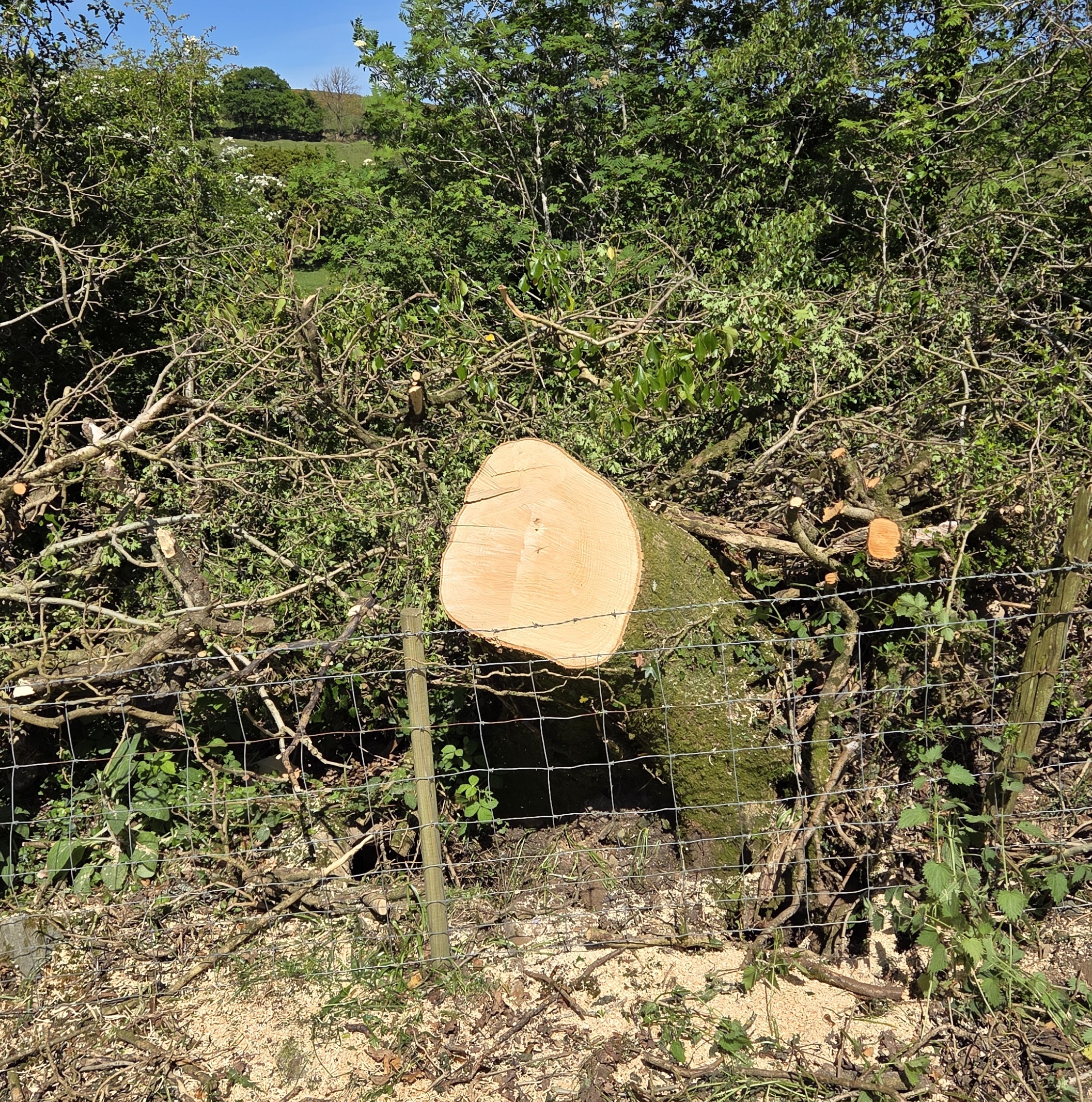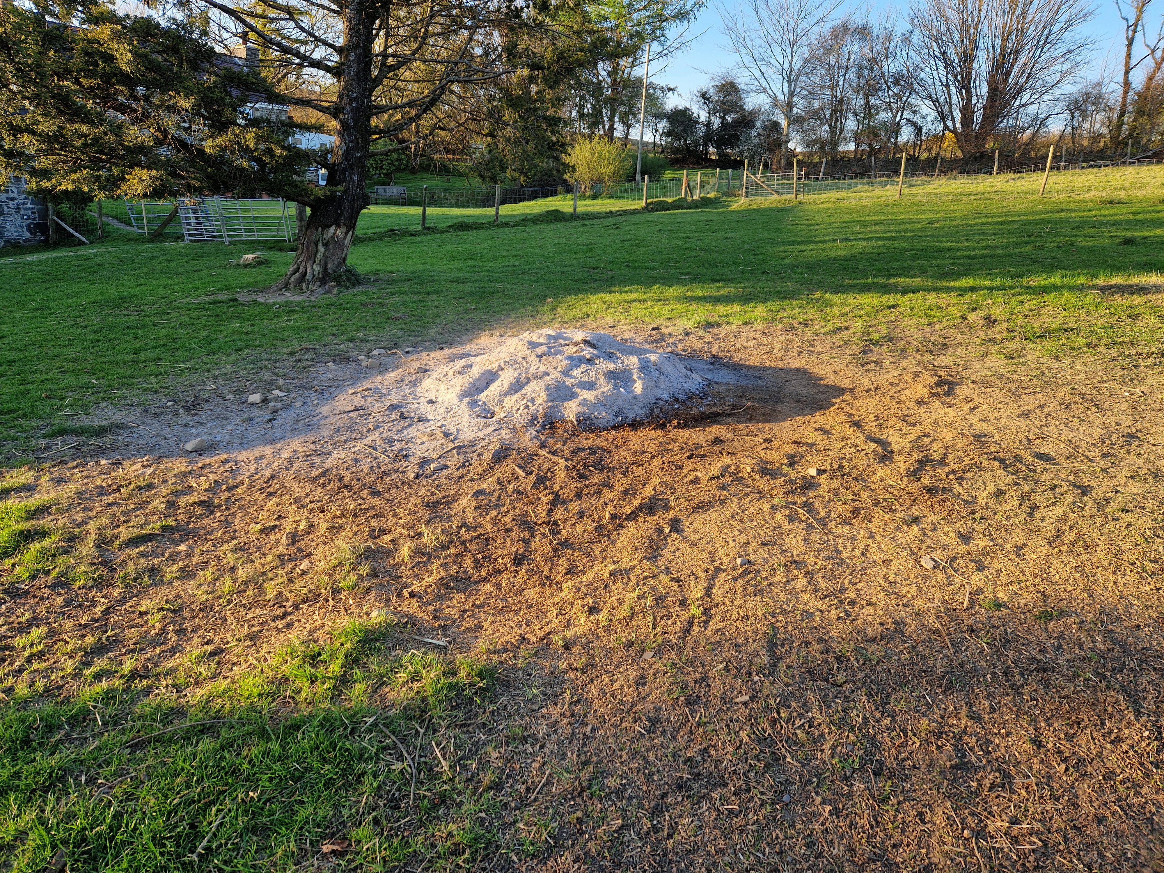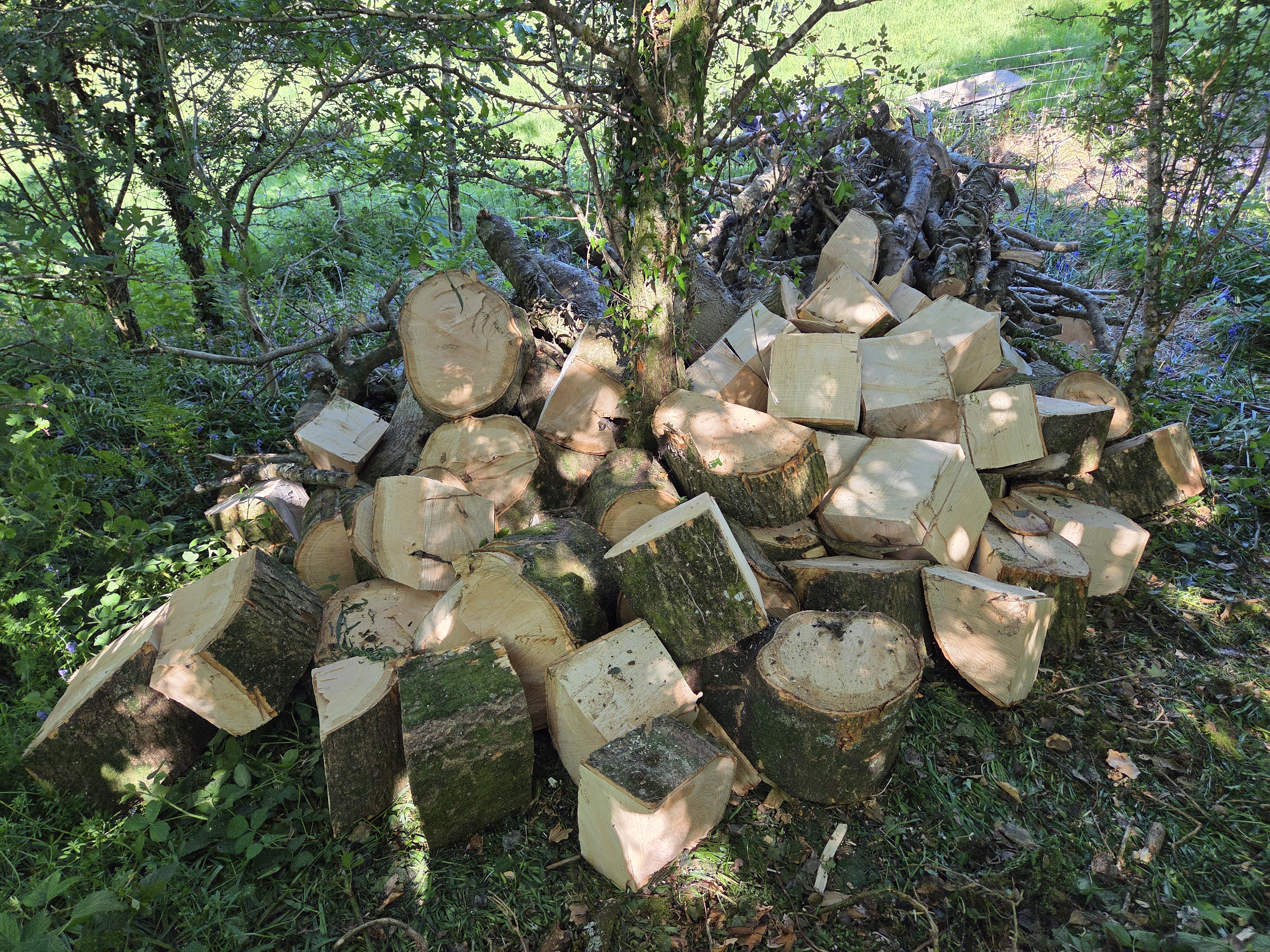 The clear up after Storm Darragh which hit us last December seemed relentless. We had so many big trees down and fencing repairs to do. Bit by bit we eventually got there. A big bonfire on the paddock cleared the last of the huge conifer that came down. Scallywag thought the cold ash from the fire was wonderful and promptly covered herself in it. The biggest tree we left until last as it was in our shelterwood and not affecting the sheep. It’s all cut up but there’s absolutely no room in the wood sheds for all the wood at the moment so it will sit there and season for a while yet. I’ve lost count of the number of fence posts that have been put in to repair damaged fences!