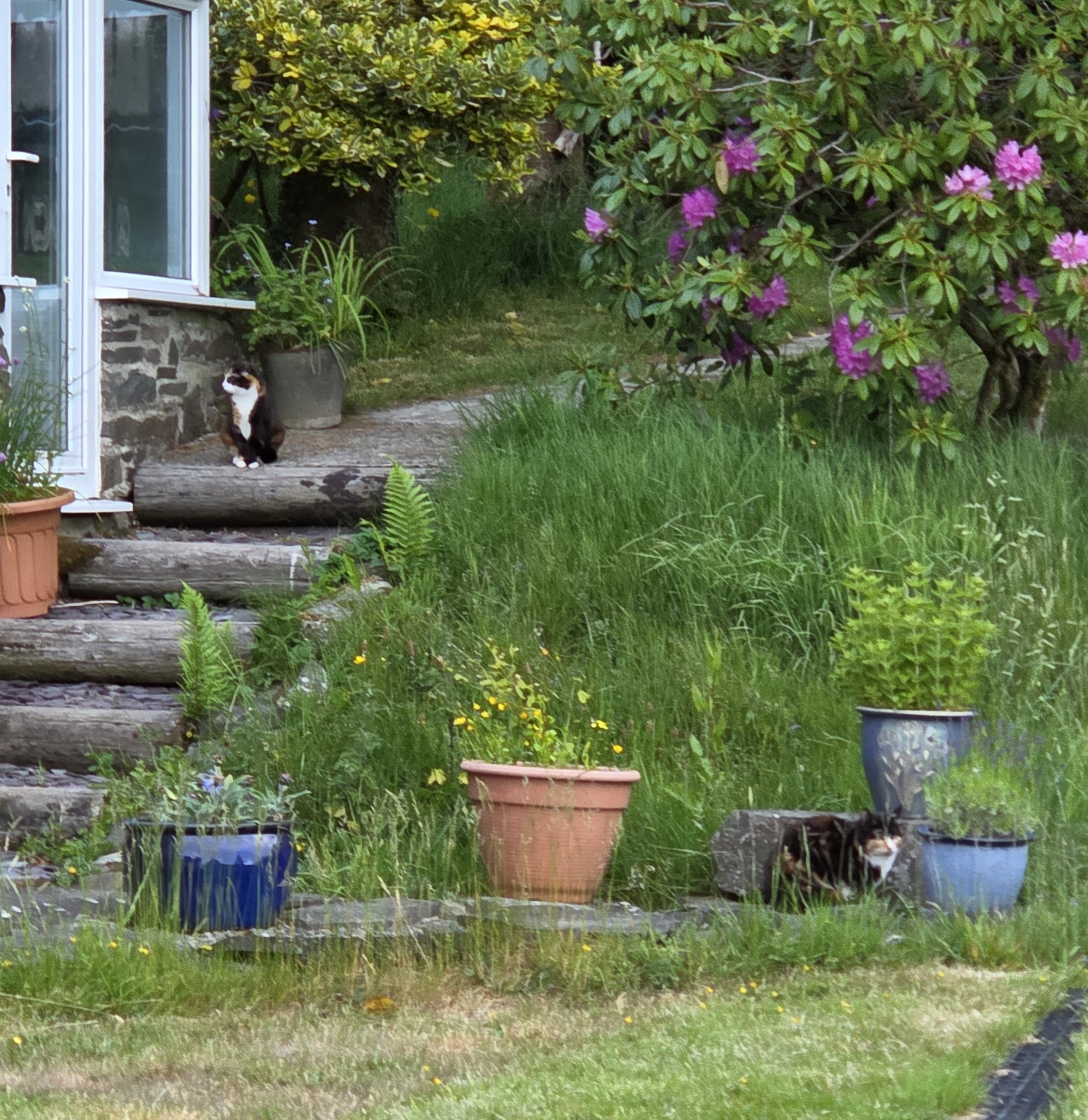In the middle of April we adopted three feral cats to help with rodent control. Midnight, a little black female and twin sisters Teasle and Tansy. They have all settled in well.