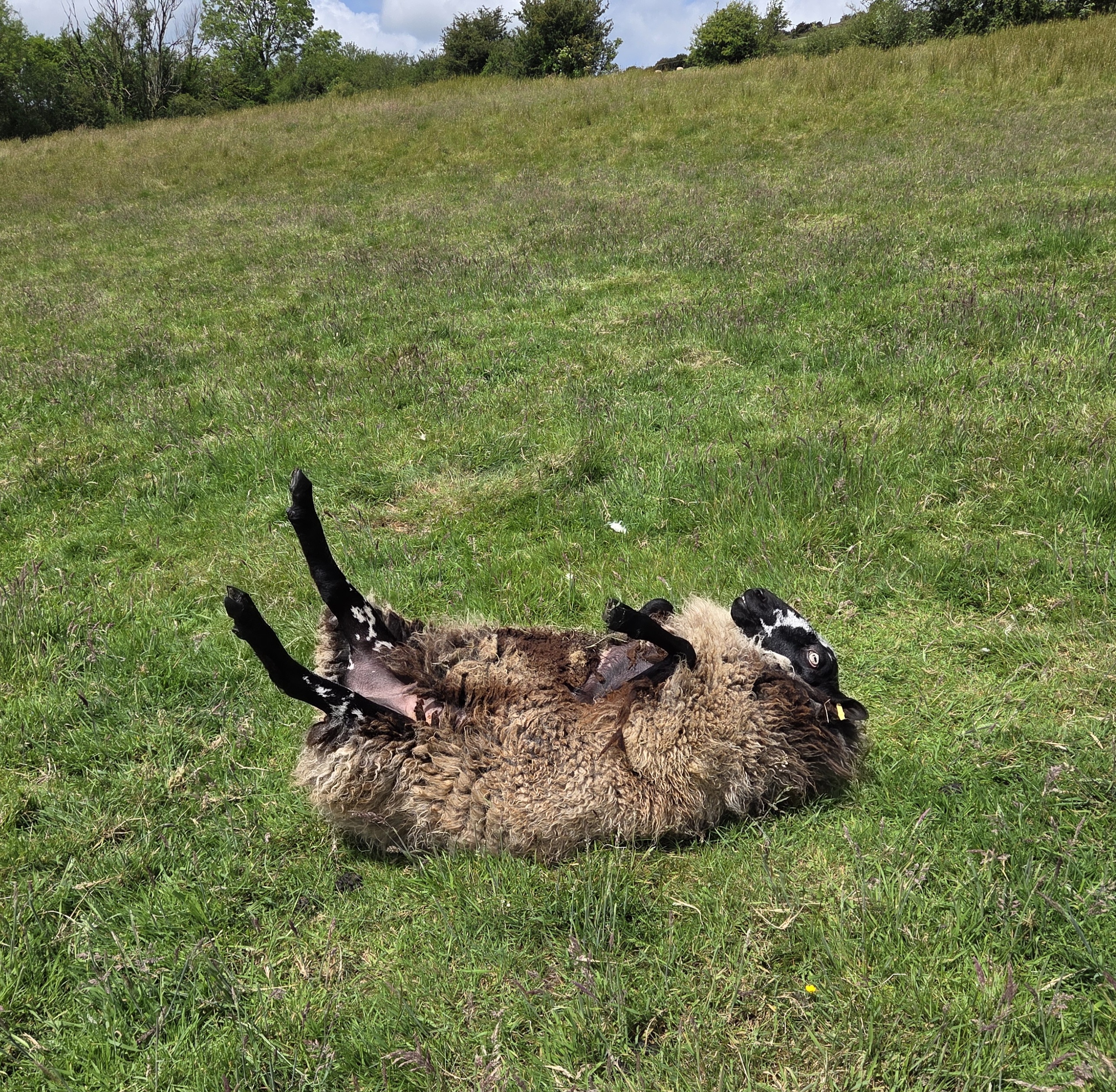 In the middle of June it turned quite humid as well as wet. Big wet sheep fleeces make the sheep heavy and itchy and the risk of rolling over and getting cast on their backs increases. I found Smout on her back one morning when i went out, thankfully she hadn’t been stuck for too long. The humidity also increases the risk of fly strike although the sheep are all clean thanks to being dagged around their rear ends but they do get sweaty and this can attract flys even when they are clean.