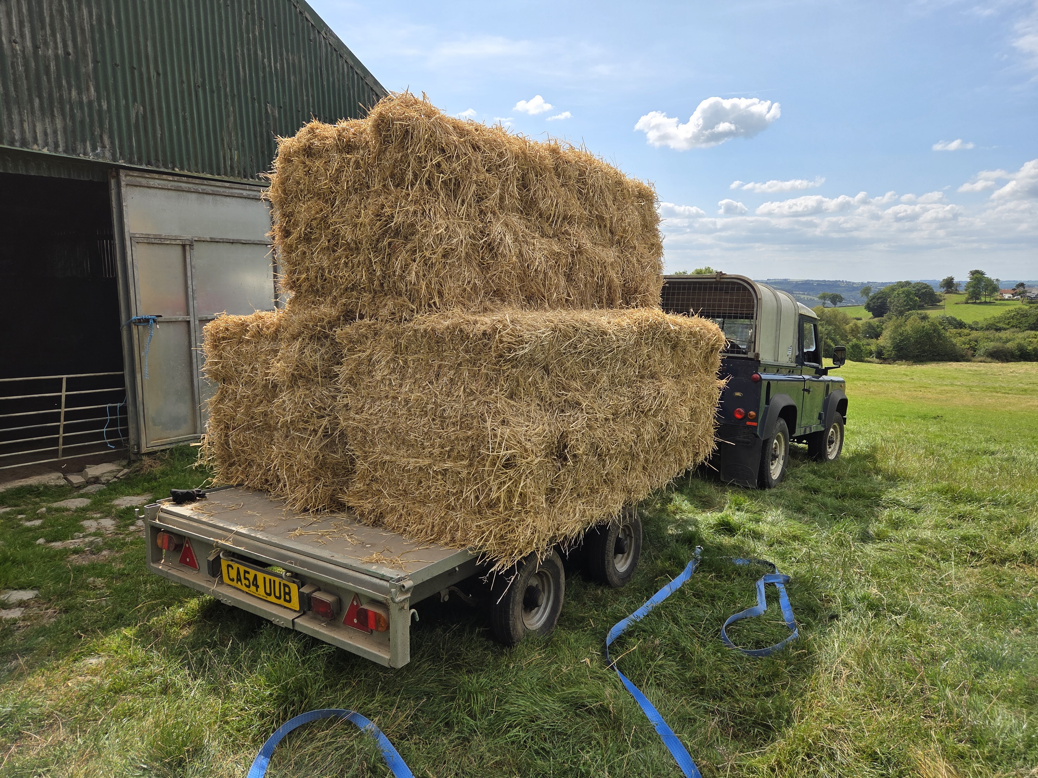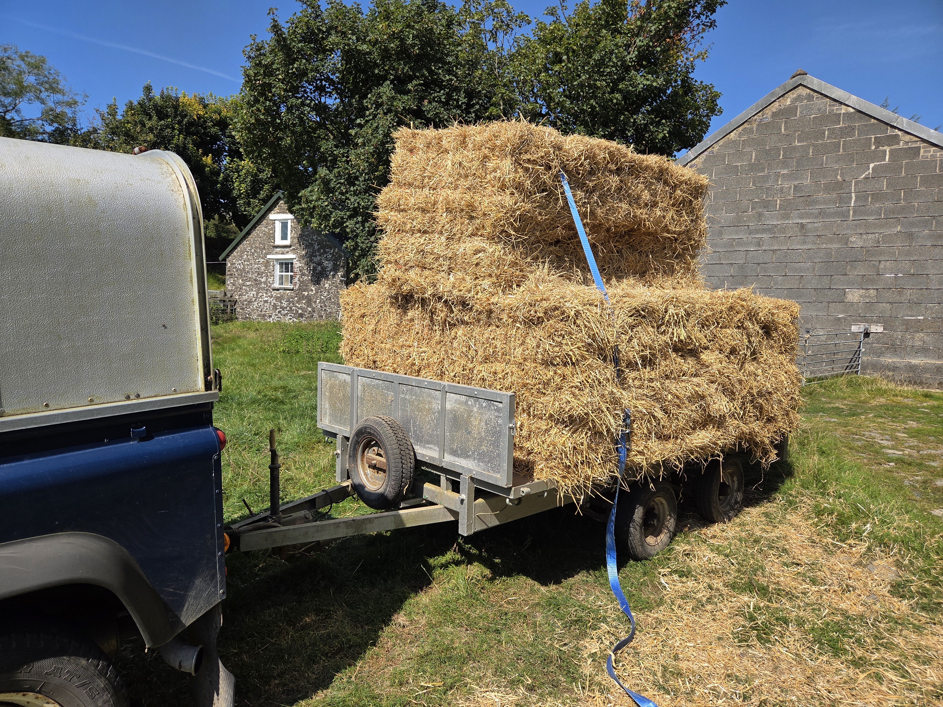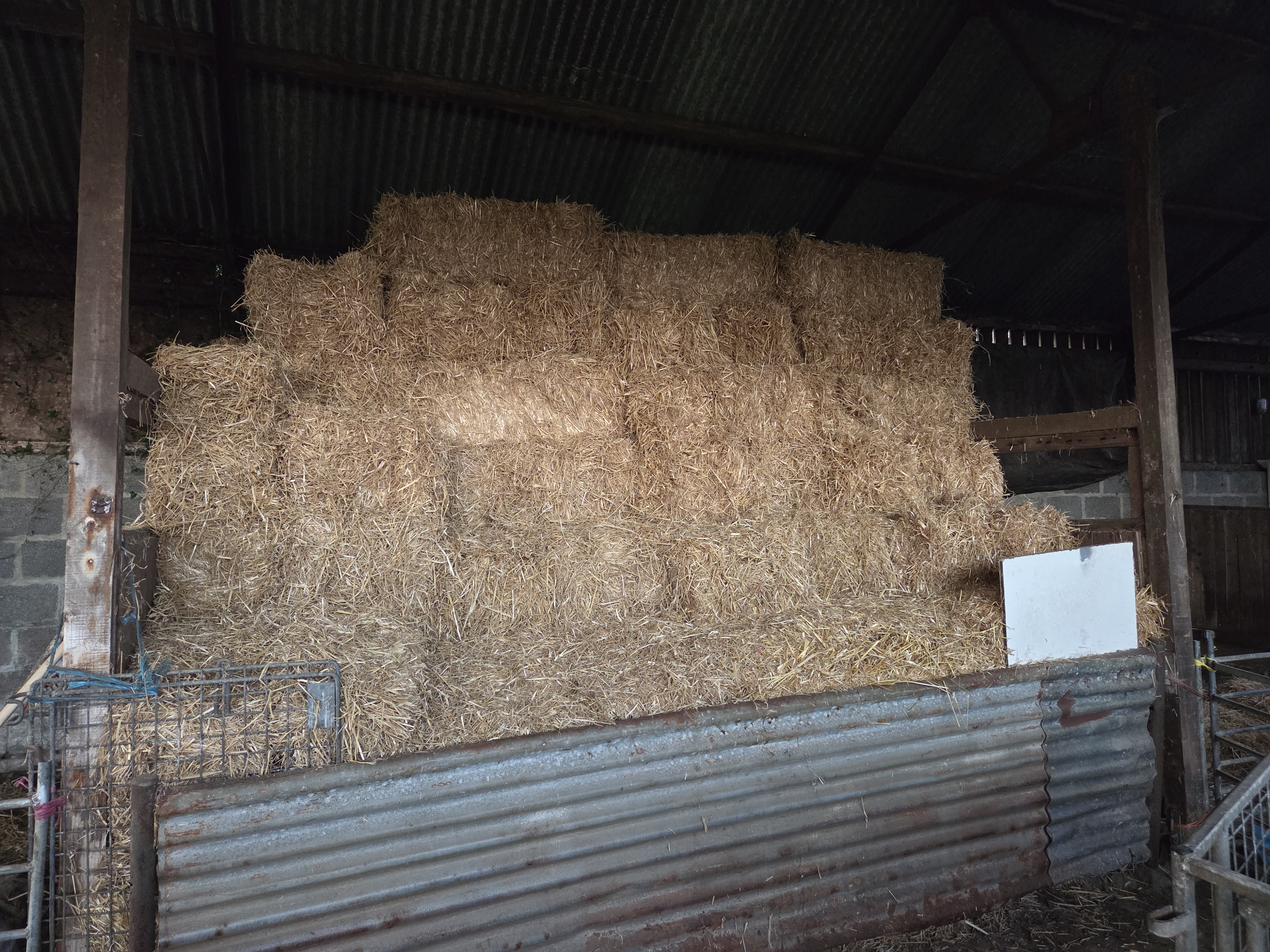 With the weather being so dry, my straw merchant advised that due to a poor harvest, straw would likely be in short supply and quite expensive this year. He wasn’t sure if or when he would be getting this years straw in stock but he had a supply of last years straw available which was excellent quality and as we like to get the straw in around August time while it’s dry weather we stocked up with two trailer loads which are now stacked up in the shed ready for the Winter months when the sheep will be in at nights. Our winter haylage is also on order and that will be delivered later in the year.