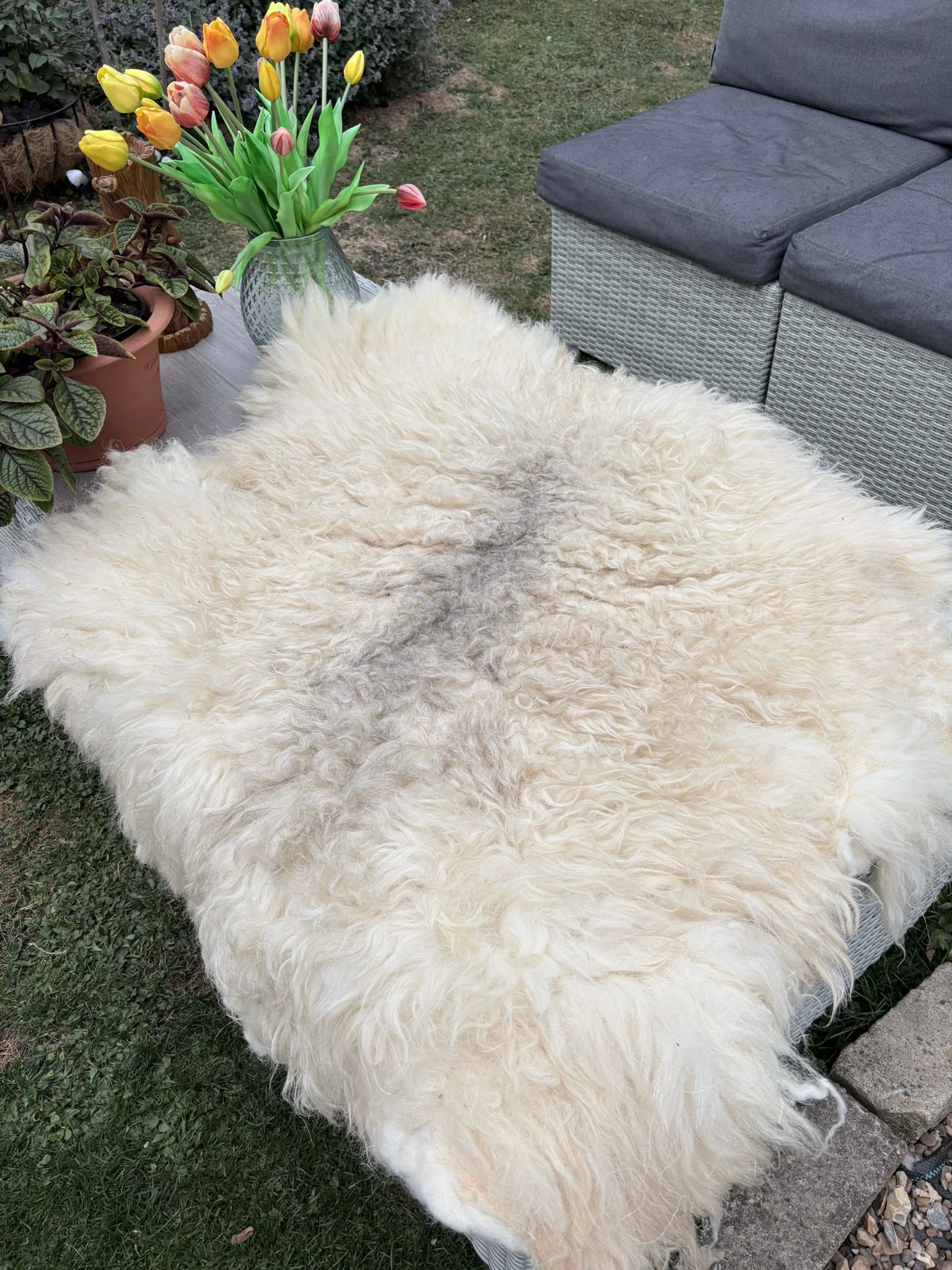Following shearing, i spent time sorting through the fleeces selecting what was suitable to sell. The flock are ageing and fleece quality does deteriorate with age, so quite a lot are no longer suitable to be sold for spinning or weaving. The poor quality fleeces are all sold to gardeners as mulch. The good quality fleeces are advertised on our Facebook sales page “Natural Raw Sheep Fleece”. Thanks to wonderful repeat customers and new supporters this year nearly all the fleeces have now been sold. A lot of our fleeces seem to be purchased to make into rugs. These are some of the amazing rugs that have been created by our talented supporters this year. I’m sure you’ll agree they are beautiful. The white rug on the right was made from Wilful Willows fleece and has been sold to raise money towards our Winter hay fund. This rug was very generously made and donated to the Sanctuary by Sharon of Rug and Spindle.